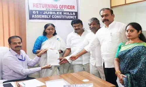 జూబ్లీహిల్స్ ఉప ఎన్నికల నామినేషన్లు ప్రక్రియ మూడోరోజు కొనసాగింది. బీఆర్ఎస్ పార్టీ అభ్యర్థి మాగంటి సునీత గోపీనాథ్ బుధవారం నామినేషన్ దాఖలు చేశారు. ఆమె రెండు నామినేషన్ సెట్లను రిటర్నిం