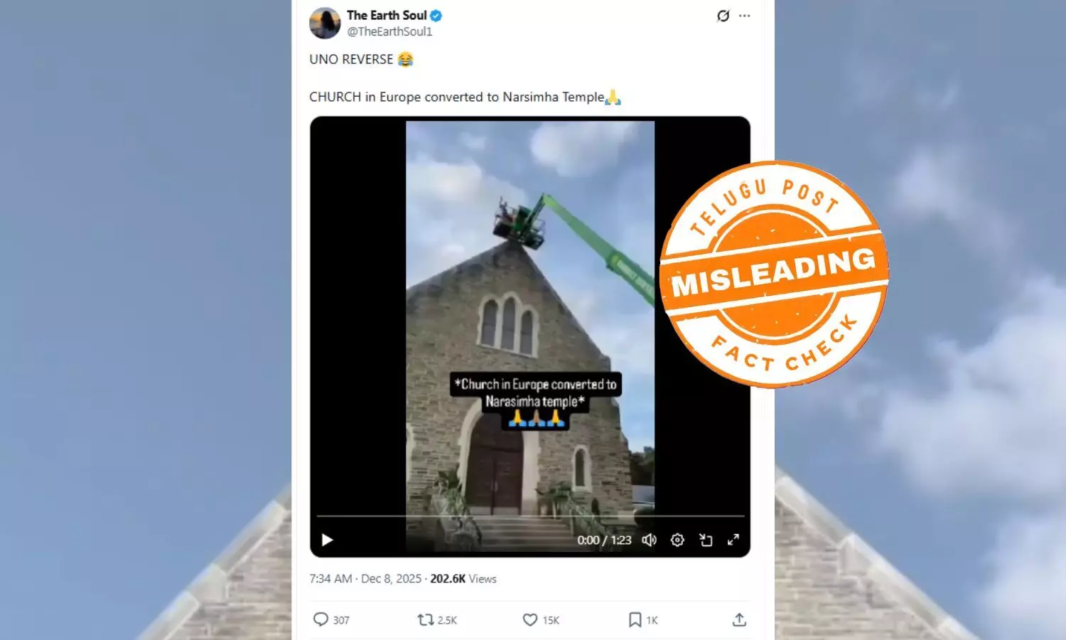 ക്രൈസ്തവ പള്ളി നരസിംഹ ക്ഷേത്രമാക്കി മാറ്റിയ വീഡിയോയാണ് പ്രചരിക്കുന്നത്