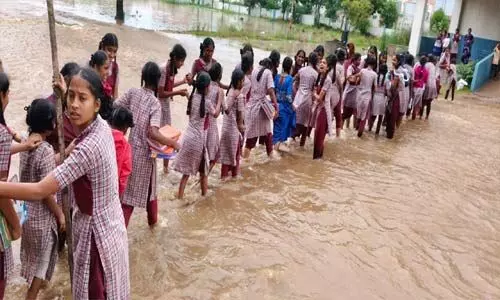 రంగారెడ్డి జిల్లా, మహేశ్వరంలో మంగళవారం సాయంత్రం కురిసిన భారీ వర్షాలకు రామచంద్రగూడ కుంట తెగింది. దీంతో మోడల్ స్కూల్, కస్తూర్బా స్కూల్, డైట్ కాలేజీలు నీట మునిగాయి. విద్యార్థులు భయందోళనతో బిక్కుబిక్కుమంటూ సహాయం కోసం ఎదురుచూశారు. పోలీసులు, స్థానికులు స్పందించి సహాయక చర్యలు చేపట్టి విద్యార్థులను వరద నీటి నుండి రక్షించారు. అయితే వరద నీటిలో విద్యార్థుల వస్తువులు పాఠ్య పుస్తకాలు నీటిపాలయ్యాయి. ఇళ్లలోకి వరదనీరు చేరడంతో, స్థానిక పోలీసు శాఖ నేతృత్వంలో సహాయక చర్యలు చేపట్టారు. సిఐ వెంకటేశ్వరులు, ఎస్ఐలు ప్రసాద్, రాఘవేందర్రావు, ధనుంజయ్ తదితరులు వరద నీరు చేరిన బాధితుల ఇళ్లల్లో పర్యటించి, నీటమునిగిన ఇళ్ల నిర్మాణ నష్టం, నివాసితుల పరిస్థితులను సమీక్షించారు. బాధిత కుటుంబాలకు తక్షణ సహాయ చర్యలు తీసుకోవాలని, సంబంధిత అధికారులకు సమస్యలపై సూచనలు అందజేశారు.