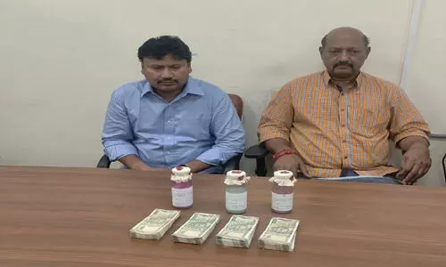 పాస్పోర్ట్ కేసులో నకిలీ సర్టిఫికెట్లు ఇచ్చిన నిందితుడి నుంచి లంచం తీసుకుంటూ శంషాబాద్ ఎయిర్పోర్ట్ ఔట్ పోస్ట్ సీఐ సంపత్తి కనుకయ్య, ఎస్సై సిద్ధేశ్వర్ ఏసీబీ అధికారులకు రెడ్ హ్యాండెడ్గా పట్టుబడ్డారు. ఇటీవల ఫేక్ పాస్పోర్ట్ కేసులో నకిలీ సర్టిఫికెట్ ఇచ్చిన కేరళకు చెందిన వ్యక్తిని శంషాబాద్ ఎయిర్పోర్టు ఔట్ పోస్ట్ పోలీసులు అరెస్టు చేశారు. బెయిల్పై బయటికి వచ్చిన వ్యక్తిని ప్రతి ఆదివారం పోలీస్స్టేషన్లో హాజరు కావాలని పోలీసులు సూచించారు, చార్జిషీట్ ఫైల్ చేయడం కోసం బాధితుడిని సీఐ కనకయ్య, ఎస్ఐ సిద్ధేశ్వర్లు మొదటగా రూ.15 లక్షలు డిమాండ్ చేశారు. డబ్బులు ఇవ్వకపోతే కుటుంబసభ్యుల పేర్లు కూడా చార్జిషీట్లో చేరుస్తామని వారు హెచ్చరించారు. బాధితుడు అంత ఇచ్చుకోలేనని బ్రతిమిలాడగా రూ. 5 లక్షలకు ఒప్పందం కుదుర్చుకున్నారు. ఇందులో భాగంగా ముందుగా మంగళవారం రూ.2 లక్షల లంచం సీఐ కనకయ్య, ఎస్ఐ సిద్దేశ్వర్లు తీసుకుంటుండగా పట్టుకున్నామని రంగారెడ్డి జిల్లా రేంజ్ అవినీతి నిరోధక శాఖ డీఎస్పీ ఆనంద్కుమార్ తెలిపారు.