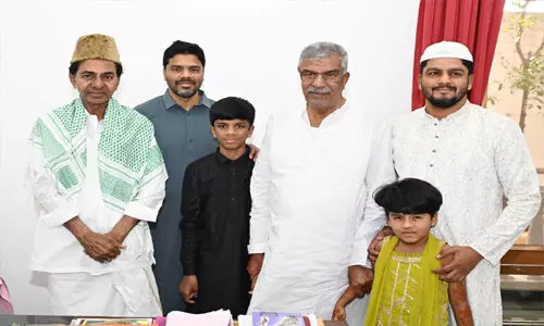 బిఆర్ఎస్ అధినేత, మాజీ ముఖ్యమంత్రి కెసిఆర్ తన చిన్ననాటి స్నేహితుడు, మార్కెట్ కమిటీ మాజీ చైర్మన్ మ హమ్మద్ జహంగీర్, మాజీ హోం మంత్రి మహమూద్ అలీ, ఇతర ముస్లింలతో రంజాన్ వేడుక లు జరుపుకున్నారు. శనివారం ఎర్రవెల్లి నివాసం లో హోం మంత్రి మహ్మద్ మహమూద్ అలీ, మ హమ్మద్ జహంగీర్తో పాటు బిఆర్ఎస్ రాష్ట్ర నా యకుడు జుబేర్ మహమ్మద్ తదితరులు మర్యాద పూర్వకంగా కలిశారు. మహమూద్ అలీ ముని మనుమడిని కెసిఆర్ ప్రత్యేకంగా ఆశీర్వదించా రు. ఈ సందర్భంగా కెసిఆర్ వారితో ఫొటోలు ది గి రంజాన్ శుభాకాంక్షలు తెలిపారు. ఈ భేటీలో వారు కెసిఆర్కు సంప్రదాయ ఇస్లాం టోపీని బహూకరించగా, ఆయన దానిని ధరించారు. కొద్దిసేపే వారితో కలిసి స్నేహపూర్వకంగా పం డుగ సంతోషాన్ని పంచుకున్నారు.