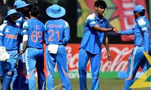 హరారే: అండర్-19 ప్రపంచకప్లో భాగంగా అఫ్గానిస్థాన్తో జరుగుతున్న సెమీఫైనల్ మ్యాచ్లో భారత బ్యాటర్లు అదరగొట్టారు. అఫ్గానిస్థాన్ని చిత్తుగా ఓడించి ఫైనల్స్కి భారత్ దూసుకెళ్లింది. ఈ మ్యాచ్లో తొలుత బ్యాటింగ్ చేసిన అఫ్గాన్ జట్టు 50 ఓవర్లలో 4 వికెట్ల నష్టానికి 310 పరుగులు చేసింది. ఈ లక్ష్య చేధనలో భారత ప్లేయర్లు ఏ మాత్రం తడబడకుండా దంచికొట్టారు. ఓపెనర్గా వచ్చిన వైభవ్ సూర్యవంశీ 33 బంతుల్లో 9 ఫోర్లు, 4 సిక్సుల సాయంతో 68 పరుగులు చేసి ఔట్ అయ్యాడు. ఆ తర్వాత కెప్టెన్ ఆయుష్ మాత్రే 59 బంతుల్లో 5 ఫోర్లు, 4 సిక్సులతో 62 పరుగులు చేసి పెవిలియన్ చేరాడు. అయితే మరో ఓపెనర్ ఆరోన్ జార్జి మాత్రం అప్గాన్ బౌలర్లకు చుక్కలు చూపించాడు. 95 బంతుల్లో సెంచరీ సాధించాడు. 104 బంతుల్లో 15 ఫోర్లు, 2 సిక్సులతో 115 చేసి ఆరోన్ ఔట్ అయ్యాడు. మొత్తానికి భారత్ 41.1 ఓవర్లలో 311 పరుగులు చేయడంతో ఈ మ్యాచ్లో 7 వికెట్ల తేడాతో విజయం సాధించింది. ఫైనల్స్తో భారత్, ఇంగ్లండ్ అండర్-19 జట్టుతో తలపడనుంది.