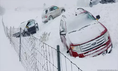 అమెరికాలో దశాబ్ధ కాలంలో ఎప్పుడూ లేని విధంగా భారీ స్థాయి మంచు తుపాన్ సంభవించింది. ఈస్ట్కోస్ట్లో ఇంతకు ముందెన్నడూ మంచు వర్షం, అత్యంత కనిష్ట ఉష్ణోగ్రతలు లేని రాష్ట్రాలపై కూడా ఇప్పుడు ప్రభావం పడింది. ఆదివారం సోమవారం భారీ స్థాయిలో మంతుతుపాన్ ప్రభావం పడనుంది. దీనితో మొత్తం మీద దేశవ్యాప్తంగా 9000కు పైగా విమానాల రాకపోకలను నిలిపివేశారు. ఈ పరిణామంతో అమెరికా అంతటా దాదాపుగా ఆదివారం , సోమవారం విమానాల సర్వీసులు ఉండవు. పలు ప్రాంతాలలో ఇప్పుడు ఉష్ణోగ్రతలు మైనస్ 34 డిగ్రీల సెల్సియస్ స్థాయికి చేరింది. గ్రామీణ లూయిస్ కౌంటీలో ఈ పరిణామం చాలా రోజులుగా నెలకొంది. అనేక చోట్ల ఓ అడుగు లేదా 30 సెంటిమీటర్ల ఎత్తు మంచు పేరుకుపోయింది. దీనిని తొలిగించడం అతి కష్టం అవుతోంది. ఓ వైపు ట్రంప్ ఇది ఏమంత పెద్ద సమస్య కాదని కొట్టిపారేస్తూ ఉన్నా, గ్లోబల్ వార్మింగ్ కామెంట్లకు దిగుతూ ఉన్నా ఇప్పటి పరిణామం అమెరికాకు బారీ మంచు ఉపద్రవంగా మారింది. దాదాపు 40 రాష్ట్రాలు అత్యల్ప ఉష్ణోగ్రతలతో తల్లడిల్లుతున్నాయి. దేశ వ్యాప్తంగా దాదాపు 20 కోట్ల మంది వరకూ ఇళ్లలో నుంచి కదలలేని స్థితిలో చిక్కారు. పలు చోట్ల రవాణా వ్యవస్థ కుంటుపడింది. పరిస్థితిని గుర్తించి ఇప్పుడు పలు రాష్ట్రాలలో సూపర్మార్కెట్లకు జనం ఎగబడి సరుకులు కొనుక్కుని వెళ్లుతున్నారు. దీనితో ఇవి దాదాపుగా ఖాళీ అయ్యాయి. ఇంతకు ముందు లేని రీతిలో ఇప్పుడు అసాధారణంగా టెక్సాస్ , ఒక్లాహామా వంటి రాష్ట్రాలపై మంచు తుపాన్ పంజా విసిరింది. శరీరం గడ్డకట్టుకుపోయే చలి, విద్యుత్ సరఫరాకు అంతరాయాలు, బ్లాకౌట్ పరిస్థితి , వాహనాలు నిలువెత్తు మంచులో కూరుకుని పోవడంతో ప్రజల రాకపోకలకు అంతరాయాలు ఏర్పడ్డాయి. బారీ వర్షం, మంచు కురియడంతో పరిస్థితి దిగజారింది. గురువారం శుక్రవారం రాత్రి అంతా మంచుతుపాన్ తాకిడి ఉంది. ఇది ఎక్కువ రోజులు ఉంటుందని హెచ్చరికలు వెలువడ్డాయి. మంచుతుపాన్తో ఉపద్రవ స్థాయిలో పలు చోట్ల భారీ స్థాయిలో మంచు పడుతుందని జాతీయ వాతావరణ సేవల విభాగం తెలిపింది. గంటల తరబడి విద్యుత్ సరఫరా నిలిచిపోతుంది. చెట్లు భారీ సంఖ్యలో కూలిపోవచ్చు. అత్యంత అవసరం అయితే తప్పితే ప్రయాణాలకు దిగరాదు. దాదాపుగా వాహనాలు నడిచే పరిస్థితి లేదని అధికారికంగా ప్రకటించారు. దేశ సెంట్రల్ , ఆగ్నేయ ప్రాంతాలపై విరుచుకుపడ్డ మంచుతుపాన్ ఇప్పుడు అత్యంత జనసమ్మర్థపు మధ్య అట్లాంటిక్ , ఈశాన్య రాష్ట్రాల వైపు కూడా సాగుతుంది. దీనితో న్యూ మెక్సికో నుంచి ఈస్టర్న్ సీ బోర్డు ప్రాంతం వరకూ ప్రభావం పడుతుందని వాతావరణ విభాగం తెలిపింది. ఈ వారాంతంలో 2700 విమానాలు రద్దు అయ్యాయి. తిరిగి ప్రకటించే వరకూ దేశీయ మార్గాలలో విమానాల రాకపోకలు నిలిచిపోతాయి. పైగా ఇతర దేశాల నుంచి వచ్చే అంతర్జ