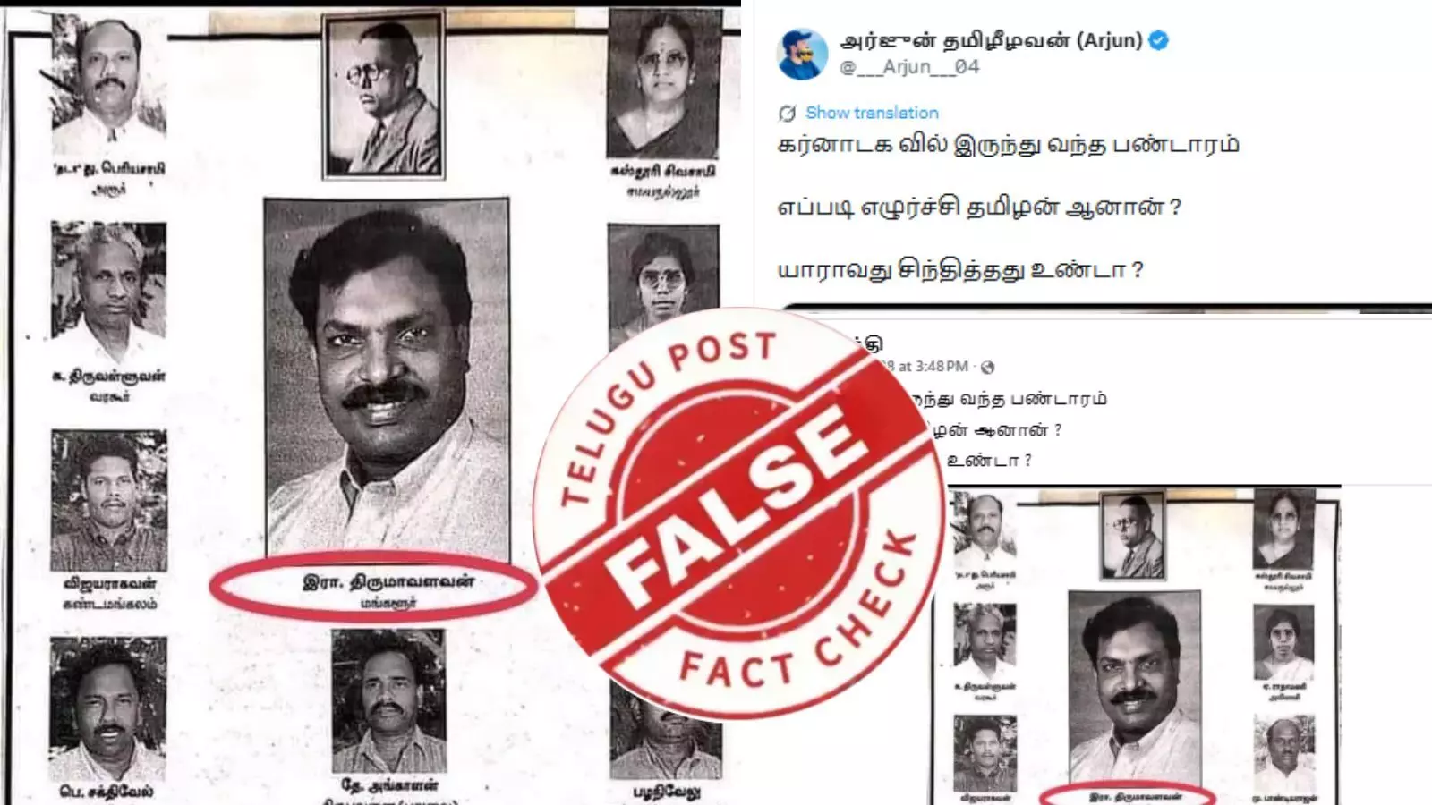 விசிக தலைவர் திருமாவளவன் கர்நாடகா தேர்தலில் போட்டியிட்டதாக பரவும் தகவல் தவறானது.