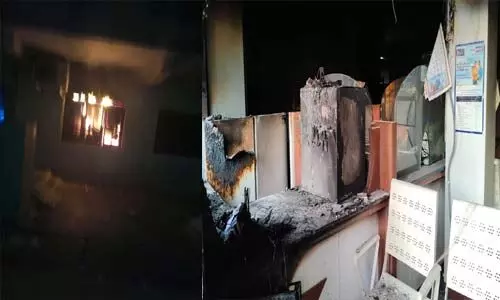 నల్లగొండ జిల్లా, హాలియా ఎస్బిఐ శాఖలో మంగళవారం రాత్రి విద్యుఘాతంతో అగ్నిప్రమాదం చోటుచేసుకుంది. బ్యాంక్ మేనేజర్ మోహన్ తెలిపిన వివరాల ప్రకారం.. మంగళవారం అర్థరాత్రి షార్ట్సర్కూట్ చోటుచ