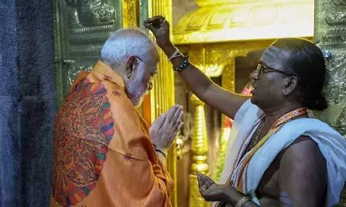 కర్నూలు నుండి హెలికాప్టర్లో శ్రీశైలం బయలుదేరిన ప్రధాని మోదీమల్లికార్జున స్వామిని దర్శించుకున్నారు. ఈ సందర్భంగా అర్చకులు ప్రత్యేకపూజలు నిర్వహించి స్వామివారి తీర్థప్రసాదాలు అందజేశా