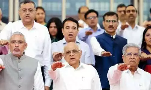 నేడు కొత్త మంత్రి మండలి పాతవారికి చాలా మందికి షాక్లు అహ్మదాబాద్ ః ప్రధాని మోడీ, హోం మంత్రి అమిత్షాల రాజకీయ కేంద్ర బిందువు గుజరాత్లో శుక్రవారం రాష్ట్ర మంత్రిమండలి భారీ ప్రక్షాళన జరు