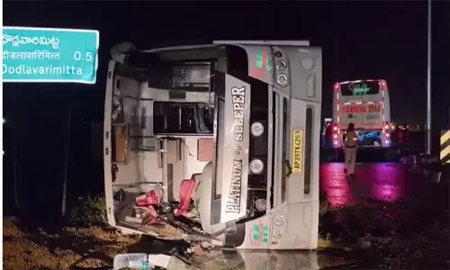 ఉమ్మడి నెల్లూరు జిల్లా పెళ్లకూరు మండలం దొడ్ల వారి మిట్ట జాతీయ రహదారిపై ప్రైవేట్ ట్రావెల్స్ బస్సు శుక్రవారం తెల్లవారుజామున బోల్తా పడింది. ఈ ఘటనలో ఆరుగురు ప్రయాణికులు గాయపడ్డారు. అదే రహ