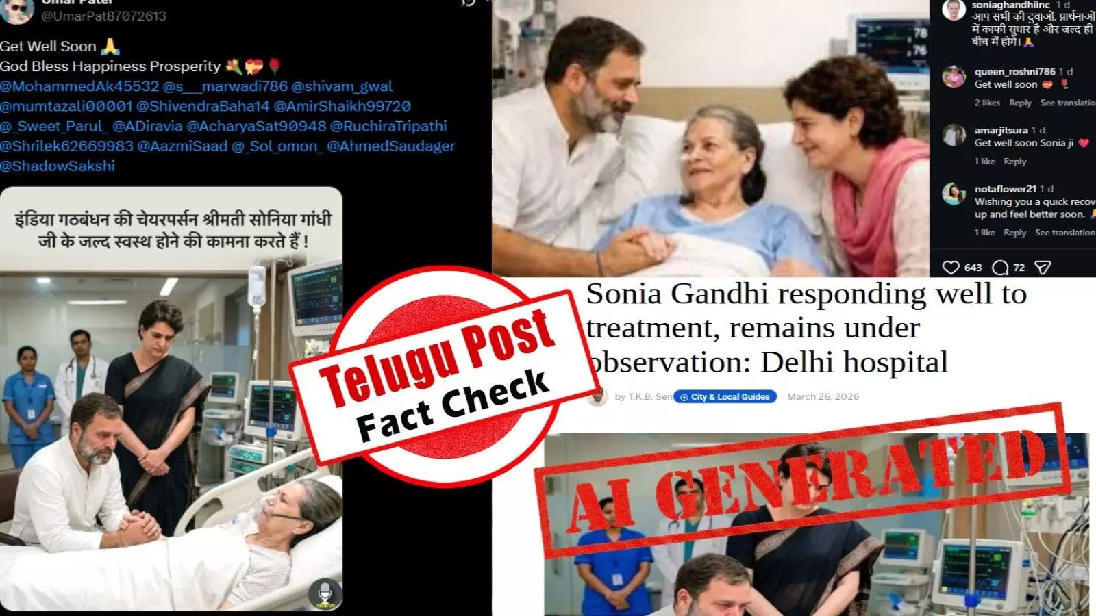 ఏఐ ద్వారా సృష్టించిన ఫోటోలను సోనియా గాంధీ ఆసుపత్రిలో చికిత్స తీసుకుంటున్న నిజమైన
