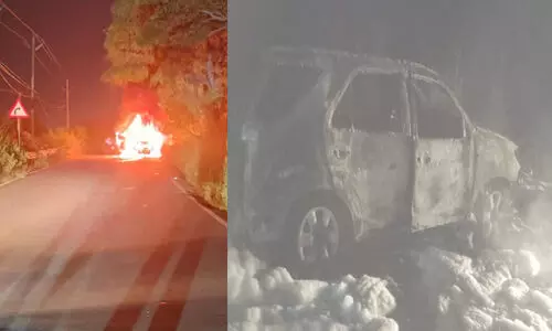 క్రిష్ణగిరి: నాగర్ కర్నూలు జిల్లా క్రిష్ణగిరి మండలో కారులో మంటలు చెలరేగడంతో పూర్తిగా వాహనం దగ్ధమైంది. ఫార్చునర్ కారులో హైదరాబాద్ నుంచి శ్రీశైలం వెళ్తుండగా ఈగలపెంట దగ్గరలో కారులో నుంచి మంటలు వచ్చాయి. కారులో ఉన్నవారి బయటకు దిగి ప్రాణాలు రక్షించుకున్నారు. క్షణాల వ్యవధిలో కారు మొత్తానికి మంటల వ్యాపించి పూర్తిగా దగ్ధమైంది. దీంతో జాతీయ రహదారిపై ట్రాఫిక్ జామ్ ఏర్పడింది. అగ్నిమాపక యంత్రాలు ఘటనా స్థలానికి చేరుకొని మంటలను ఆర్పేశాయి. పోలీసులు క్రేన్ సహాయం తో వాహనాన్ని పక్కకు తొలగించారు.