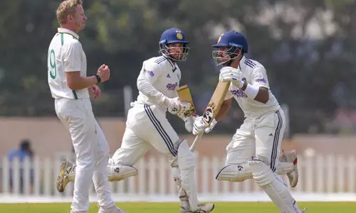 ముంబై: సౌతాఫ్రికాఎతో జరుగుతున్న అనధికార టెస్టులో టీమిండియా ఎ జట్టు గెలుపు దిశగా దూసుకెళుతోంది. తొలి టెస్టులో భారీవిజయంతో ఆధిక్యంలో ఉన్న భారత్ఎ రెండో టెస్టులోనూ అదే జోరును కొనసాగిస్తోంది. వికెట్ కీపర్ ధ్రువ్ జురెల్(127 నాటౌట్) రెండో ఇన్నింగ్స్లోనూ సెంచరీతో చెలరేగాడు. అతని తోడు జట్టు సారథి రిషభ్ పంత్(65 నాటౌట్) సయితం అర్ధ శతకంతో రాణించాడు. దీంతో టీమిండియా రెండో ఇన్నింగ్స్ను 382/-7వద్ద డిక్లేర్ చేసింది. అనంతరం రెండో ఇన్నింగ్స్ ప్రారంభించిన సౌతాఫ్రికా జట్టు శనివారం ఆట ముగిసే సమయానికి వికెట్ కోల్పోకుండా 25 పరుగులు చేసింది. చివరిదైన నాలుగో రోజు ఆదివారం ప్రత్యర్థి బ్యాటర్లను ఆటకట్టిస్తే సునయాస విజయం ఖాయం. తొలి ఇన్నింగ్స్లో ధ్రువ్ జురెల్ (132 నాటౌట్) సెంచరీతో గాడిలోపడిన భారత్.. బౌలర్ల విజృంభణతో సఫారీలను 221కే ఆలౌట్ చేసింది. అనంతరం రెండో ఇన్నింగ్స్లో టాపార్డర్ విఫలమైనా.. జురెల్ మెరుపు శతకంతో జట్టును మరోసారి గట్టెక్కించాడు. 17 పరుగుల వద్ద రిటైర్డ్ హర్ట్గా మైదానం వీడిన పంత్.. హర్ష్ దూబే(84) వికెట్ పడ్డాక బ్యాటింగ్ వచ్చి చెలరేగాడు. జురెల్తో కలిసి స్కోర్ బోర్డును ఉరికించిన పంత్.. సిక్సర్తో అర్ధ శతకం సాధించాడు. అప్పటికే ఆధిక్యం 400 మార్క్ దాటింది. టైమింగ్ కుదరక పంత్ వికెట్ కీపర్ చేతికి చిక్కాడు. దీంతో 382/-7 వద్ద భారత ఏ జట్టు రెండో ఇన్నింగ్స్ను డిక్లేర్ చేసి, 416 పరుగుల భారీ లక్షాన్ని సౌతాఫ్రికా ముందు ఉంచింది. అనంరతం రెండో ఇన్నింగ్స్ ప్రారంభించిన సఫారీఏ జట్టు ఆట ముగిసేసరికి 25 పరుగులు చేసింది. ఓపెనర్లు జొర్డాన్ హెర్మన్(15 నాటౌట్), లెసెగో సెనొకెవెనె(9 నాటౌట్)లు క్రీజులో ఉన్నారు. ఇక తొలి ఇన్నింగ్స్లో బంతిలో చెలరేగిన ప్రసిధ్ కృష్ణ, ఆకాశ్ దీప్, సిరాజ్లు మరోసారి రాణిస్తే.. సౌతాఫ్రికా బ్యాటర్లు కట్టడి చేయడం తేలికే.