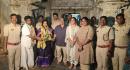 ముసుగు ధరించిన ఒక వ్యక్తిని ఇద్దరు వ్యక్తులు ఎస్కార్ట్ చేస్తూ తీసుకెళ్తుండగా