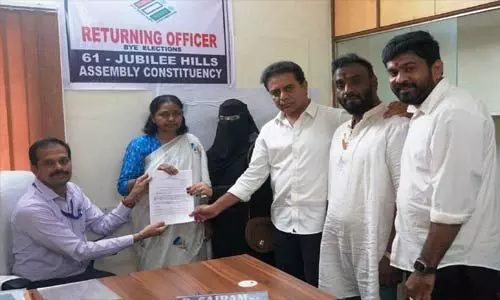 మన తెలంగాణ/హైదరాబాద్: జూబ్లీహిల్స్లో జరుగుతున్న ఎన్నిక పార్టీల మధ్యలో జరుగుతున్న ఎన్నిక కాదని, ఈ ఉప ఎన్నిక ఇద్దరు వ్యక్తుల ఎన్నిక కాదని బిఆర్స్ వర్కింగ్ ప్రెసిడెంట్ కేటీఆర్ అన్నారు. పదేళ్ల అభివృద్ధి, పాలనకి, రెండు సంవత్సరాల అరాచక పాలనకి మధ్య జరుగుతున్న ఎన్నిక అని స్పష్టం చేశారు. బుధవారం జూబ్లీహిల్స్ నియోజకవర్గం అభ్యర్థి మాగంటి సునీత గోపీనాథ్ నామినేషన్ కోసం బయలుదేరేముందు భారత రాష్ట్ర సమితి కార్యాలయం తెలంగాణ భవన్లో పార్టీ వర్కింగ్ ప్రెసిడెంట్ కేటీఆర్ మీడియాతో మా ట్లాడారు. జూబ్లీహిల్స్లో ఆడబిడ్డ గెలుపు కోసం రాష్ట్రంలోని కోటి 67లక్షల మంది ఆడబిడ్డలు ఎదురుచూస్తున్నారని, ఈ మె గెలుపుతోనైనా ప్రభుత్వం ఆడబిడ్డలకు ఇచ్చిన హామీ మేరకు నెలకు రూ.2500 ఇస్తుందని ఆశిస్తున్నానని అన్నారు. లక్షల మంది రైతన్నలు ఈమె గెలుస్తుందని ఆశిస్తున్నారని, ఆ తర్వాతే తమకు ఇచ్చిన హామీలను కాంగ్రెస్ అమలు చేస్తుందని చెప్పారు. రెండు లక్షల ఉద్యోగాలు ఇస్తామని చెప్పి, తర్వాత మోసపోయిన యువతి యువకులు చూస్తున్నారని, తమ ఇళ్లు కూలగొట్టిన అరాచకాలను చూసిన తరువాత ఈ ఎన్నికల్లో భారత రాష్ట్ర సమితి గెలవాలని, ఆ అరాచకాలు ఆగాలని హైదరాబాద్ నగర పేదలు చూస్తున్నారని స్పష్టం చేశారు. మూతపడుతున్న బస్తీ దవాఖానాలు, ఉచిత తాగునీరు ఆగిపోతున్న విషయాలు ప్రజలందరూ చూస్తున్నారని, కాంగ్రెస్ పార్టీ ఒక ఇల్లు కూడా హైదరాబాదులో కట్టలేదని అన్నారు. కేసీఆర్ హైదరాబాద్లో కట్టిన లక్ష ఇళ్లు, ఇచ్చిన ఇళ్ల పట్టాలు, ఇతర అభివృద్ధి, సంక్షేమ కార్యక్రమాలు అన్నీ కూడా హైదరాబాద్ నగర ప్రజలకు గుర్తున్నాయని, కాంగ్రెస్ చేతిలో మోసపోయిన మైనార్టీలకు ఈ ఎన్నిక ఒక అవకాశంగా భావిస్తున్నారని పేర్కొన్నారు. గుణపాఠం చెప్పడానికి బీసీలు సిద్ధం ప్రభుత్వంలో ఒక్క మైనారిటీకి కూడా అవకాశం ఇవ్వకుండా దారుణంగా వారిని అవమానపరిచిన మైనారిటీలు, ఈ ఎన్నికను రాష్ట్ర ప్రభుత్వానికి, కాంగ్రెస్ పార్టీకి గుణపాఠం చెప్పడానికి ఒక అవకాశంగా భావిస్తున్నారని చెప్పారు. తమకు ఇచ్చిన బీసీ డిక్లరేషన్, రిజర్వేషన్లు అన్నీ మోసమని, ఈ అంశంలో గుణపాఠం చెప్పడానికి రాష్ట్రవ్యాప్తంగా బీసీలు సిద్ధంగా ఉన్నారన్నారు. దళిత బంధు, అభయహస్తం అని చెప్పి మోసం చేసిన దళితులు కూడా ఆగ్రహంతో ఉన్నారని, తమ అభ్యర్థికి అన్ని వర్గాల నుంచి మద్దతు వెల్లువెత్తుతున్నదన్నారు. కేసీఆర్ ఆధ్వర్యంలో మరోసారి పాలన రావడానికి, హైదరాబాద్ నగరంలో జరుగుతున్న ఈ ఉప ఎన్నిక పునాది కాబోతున్నదని, మరోసారి రాష్ట్రంలో గులాబీ పార్టీ జైత్రయాత్ర జూబ్లీహిల్స్ నుంచే ప్రారంభం కాబోతున్నదని వెల్లడించారు. తమ పార్టీ అభ్యర్థికి మద్దతు ఇవ్వాలి అన్ని వర్గాల మద్దతు, అండతో తమ పార్టీ అభ్యర్థి