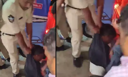అమరావతి: ఆంధ్రప్రదేశ్ రాష్ట్రం నంద్యాల జిల్లా డోన్లో కానిస్టేబుల్ చైన్ స్నాచింగ్ పాల్పడ్డాడు. అంగట్లో కూర్చున్న మహిళ మెడలోంచి 5 తులాల బంగారు చైన్ లాక్కొన్ని వెళ్తుండగా స్థానికులు కానిస్టేబుల్ ఆచారిని పట్టుకొని చితకబాదారు. స్థానికుల సమాచారం మేరకు పోలీసులు అక్కడికి చేరుకొని కానిస్టేబుల్ ను అదుపులోకి తీసుకున్నారు. మద్యం మత్తులో ముసుగు, హెల్మెట్ ధరించి చైన్ స్నాచింగ్కు కానిస్టేబుల్ పాల్పడ్డాడు. పోలీసులు కేసు నమోదు చేసి అరెస్టు రంగం సిద్ధం చేశారు. కానిస్టేబుల్ చితకబాదిన వీడియో సోషల్ మీడియాలో వైరల్ గా మారింది.