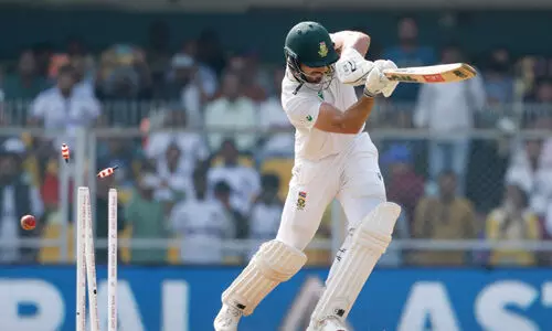 గౌహటి: భారత్, సౌతాఫ్రికా మధ్య జరుగుతున్న రెండో టెస్ట్, రెండో రోజు ఆటలో సఫారీలే ఆధిపత్యం చూపించారు. రెండో రోజు 247/6 ఓవర్నైట్ స్కోర్తో ఆటను ప్రారంభించిన సౌతాఫ్రికా.. తొలి సెషన్లో వికెట్ నష్టపోకుండా 69 పరుగులు చేసింది. టీ విరామ సమయానికి 316/6 పరుగులు చేసింది. రెండో సెషన్లో దూకుడుగా ఆడుతున్న కైల్ వెరినె వికెట్(45)ను భారత బౌలర్లు ఔట్ చేయగలిగారు. కానీ, ఆ తర్వాత బ్యాటింగ్కి వచ్చిన యాన్సెన్తో ముత్తుస్వామి అద్భుతంగా ఇన్నింగ్స్ నిర్మిస్తూ వచ్చాడు. ఈ క్రమంలో ముత్తుస్వామి తన టెస్ట్ కెరీర్లో తొలి సెంచరీ సాధించగా.. యాన్సెన్ అర్థ శతకాన్ని నమోదు చేశాడు. అయితే వీరిద్దరి 97 పరుగుల భాగస్వామ్యానికి సిరాజ్ అడ్డుకట్ట వేశాడు. సెంచరీ సాధించిన ముత్తుస్వామిని ఔట్ చేశాడు. కానీ, యాన్సెన్ మాత్రం తన బ్యాటింగ్లో వేగం తగ్గించలేదు. భారత బౌలర్లకు చుక్కలు చూపిస్తూ.. వేగంగా పరుగులు రాబట్టాడు. మరోవైపు బ్యాటింగ్ చేస్తున్న హార్మర్ (5)ని బుమ్రా ఔట్ చేశాడు. ఈ క్రమంలో 93 పరుగుల వ్యక్తిగత స్కోర్ వద్ద ఔటై.. సెంచరీని చేజార్చుకున్నాడు. దీంతో సౌతాఫ్రికా 489 పరుగుల వద్ద ఆలౌట్ అయింది. భారత బౌలింగ్లో కుల్దీప్ 4, బుమ్రా, సిరాజ్, జడేజా తలో రెండు వికెట్లు తీశారు. ఆ తర్వాత బ్యాటింగ్ ప్రారంభించిన భారత్ 6 ఓవర్లు ఆడి వికెట్ నష్టపోకుండా 9 పరుగులు చేసి.. 480 పరుగుల వెనుకంజలో ఉంది. క్రీజ్లో జైస్వాల్ (7), రాహుల్ (2) ఉన్నారు.